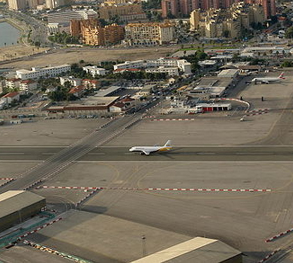 這是一條飛機汽機車人行道混合的複合式跑道。若有飛機降落,會進行地面交通管制。