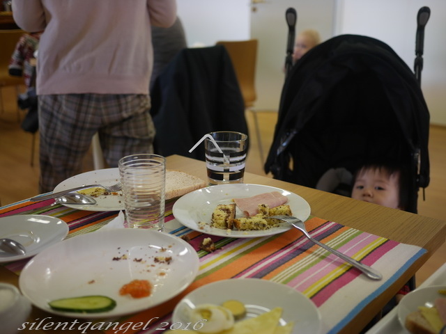 Hofn Inn早餐地點位於另一棟建築物,走幾步路就到。不過大部分的房客還是會到停車場開車到幾秒遠的餐廳....餐點是基本配備的吃到飽。排隊拿取食物的時候,看到牆上有張告示,說明餐點僅供餐廳食用,如果想外帶可洽服務人員。應該是冰島消費不便宜,房客把早餐變成午餐了。