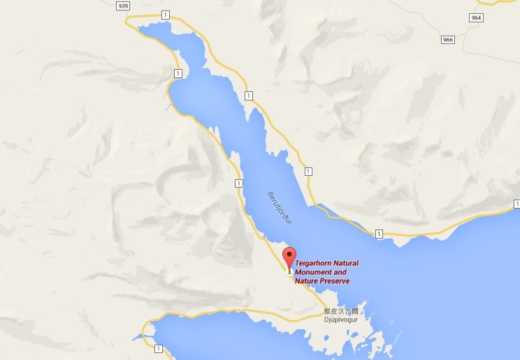接著經過Teigarhorn。真的,只有房屋兩三棟.....它是Buland county的著名農場,沸石著名產地。在網路找資料,發現紅色那棟房子似乎已有一段時間,倒是後面的黑色屋比較像新蓋的。