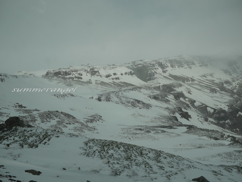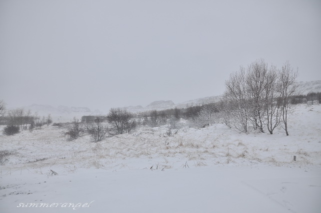 繼續往前開沒幾分鐘,又開始颳風。在冰島台地間開著就是這樣,轉個彎的天候狀況可能完全不同。看著路面被風吹著的雪,我不斷提醒老公注意路況。