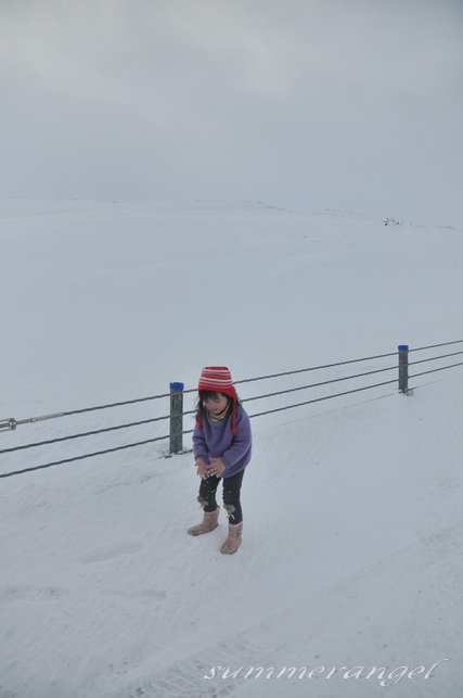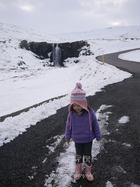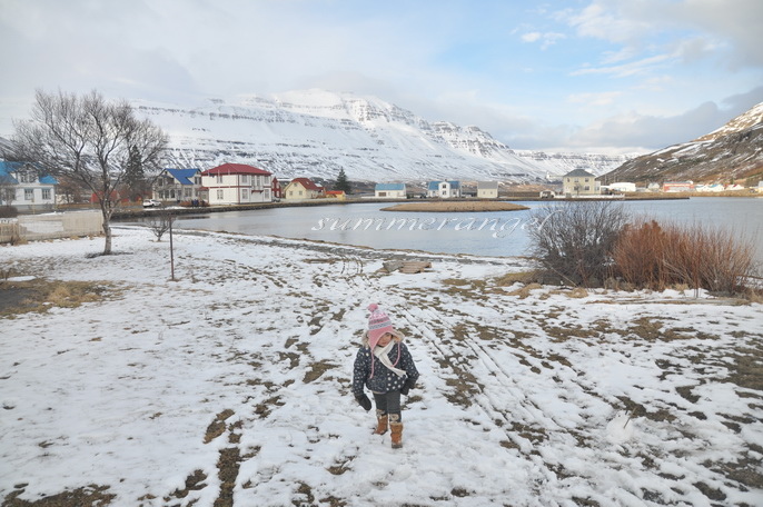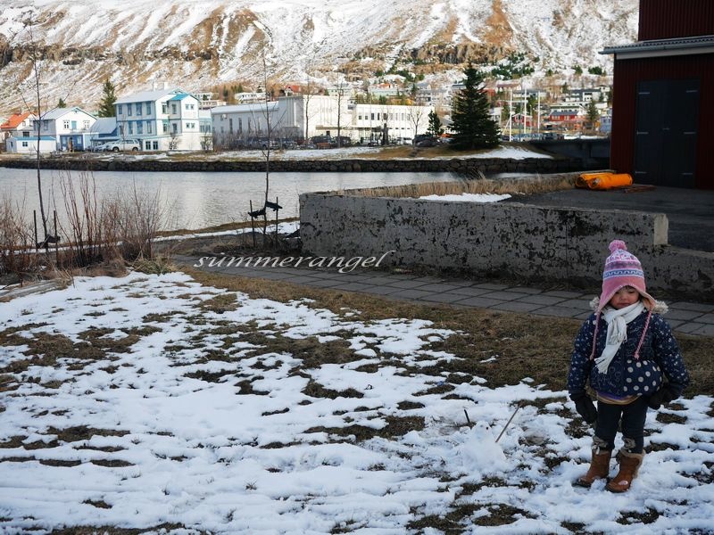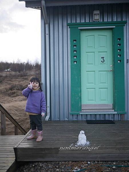 寶貝一直很想堆雪人,這個小雪人是她老爸從Seyðisfjarðarvegur過來的中途帶來的雪堆成的,真是疼愛女兒的老爸哈哈。