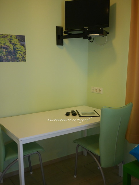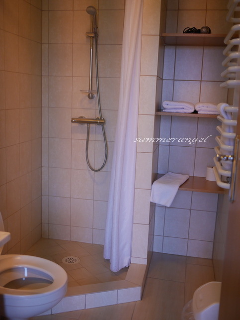 屋子不大約兩三坪,但麻雀雖小五臟俱全。浴室跟廁所雖然一簾之隔,地面築起堵水牆讓廁所保持一定乾爽。沐浴乳、浴巾、甚至連吹風機都有,真的好感動。吹風機耶....屋內還附有微波爐,可能不希望客人把小房間弄得油膩膩,又體諒客人在這裡覓食不易,留個微波爐好歹可以買個ready food微波一下。